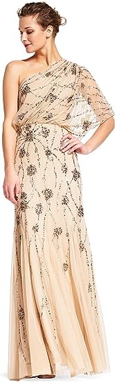 Adrianna Papell Women's One Shoulder Beaded Dress