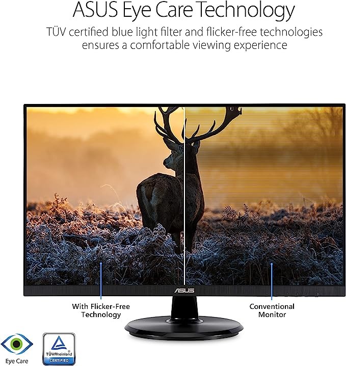 ASUS Eye Care technology features TÜV Rheinland-certified Flicker-free and Low Blue Light technologies to ensure a comfortable viewing experience
