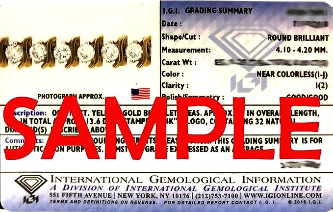 IGI Certified 8 carat Women's Diamond bracelet,14K gold "S" chain,7 inches (I-J,I2), 7 inches, metal, diamond