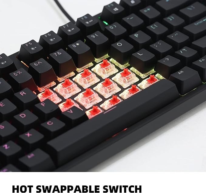 【Hot-Swapable Switch】- High-quality mechanical switch with hot swappable function supporting hot swap of 3-pin/5-pin switches is making sure that the feeling of keyboard can be customized