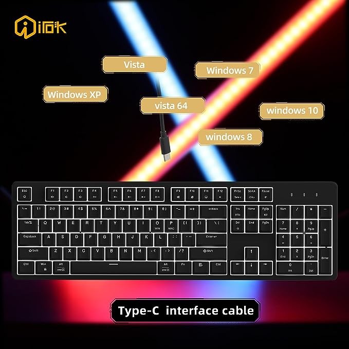【High-performance 2.4G Wireless Keyboard】 Up to 10m wireless working distance, enables the keyboard to achieve long-range wireless control. The receiver on the back of the keyboard. Play and plug, conveniently designed for gaming or office or home use. Two working modes, wired (Type C cable) and wireless, enjoy the freedom of being wireless while still not compromising performance by going wired