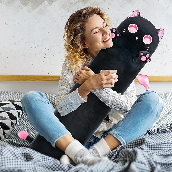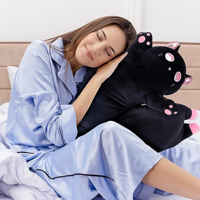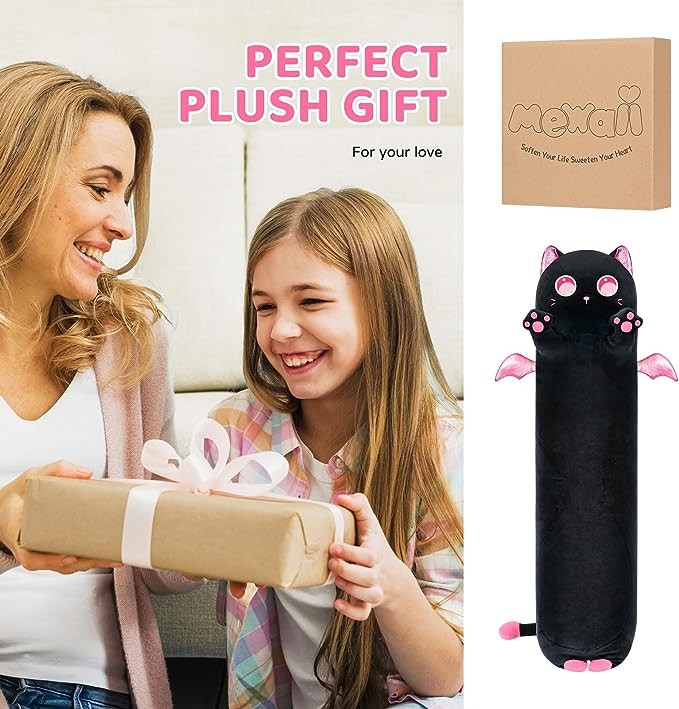 Mewaii Long Cat Plush Kids Cuddle Pillow,53 inches Cute Pink Big Eyes Cat Stuffed Animal Toys