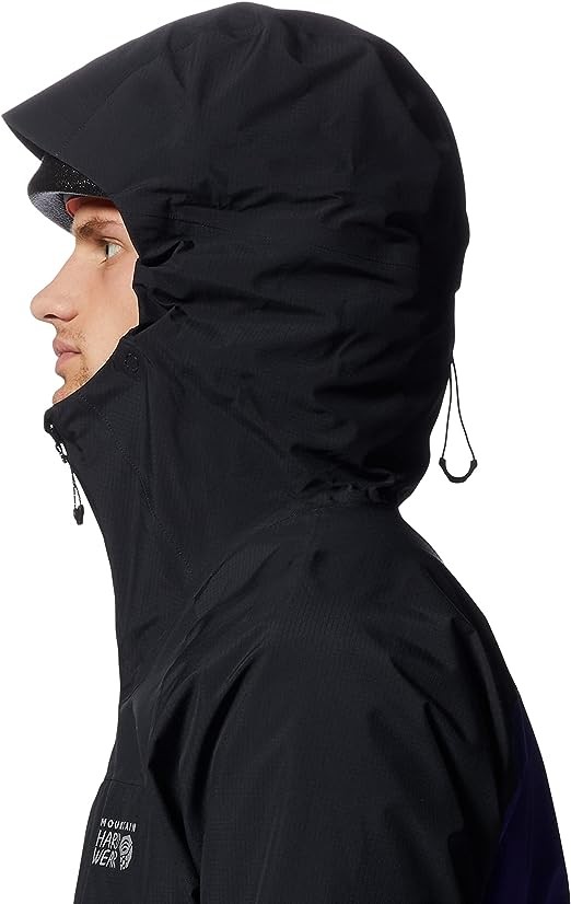 Helmet-compatible hood with three-way drawcord adjustment for secure positioning throughout movement