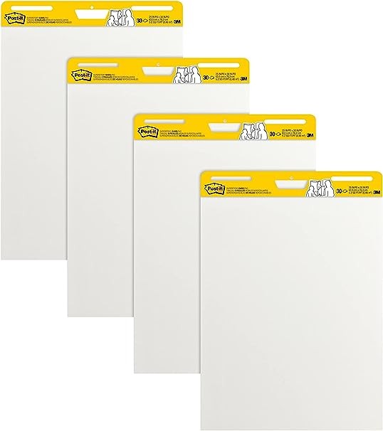 Post-it Super Sticky Easel Pad, 25 in x 30 in, White, 30 Sheets/Pad, 4 Pads/Pack, Great for Virtual Teachers and Students (559 VAD 4PK)