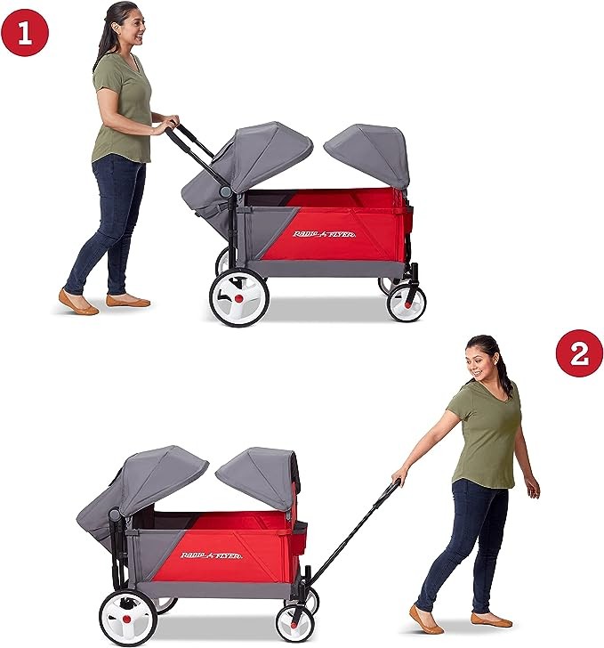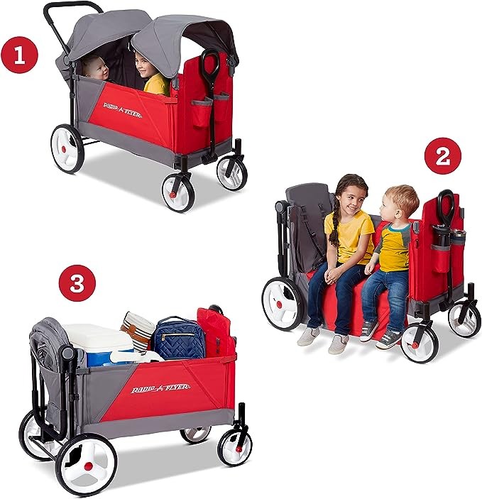 Radio Flyer Discovery Stroll 'N Wagon with Canopy, Folding 4-Wheeler with Single Reclining Seat for 1 Year Old and Up