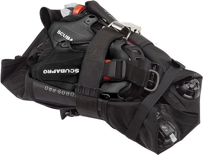 The foldable design includes folding shoulder and waist straps as well as a travel backpack that holds the entire dive kit.