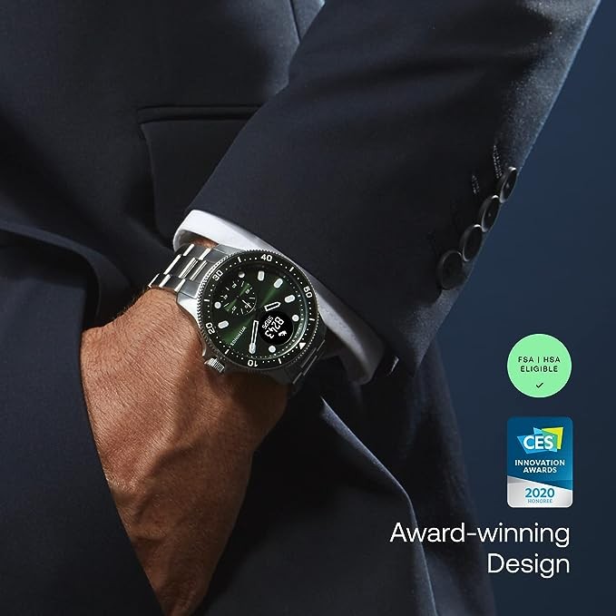 Durable Luxury - This limited edition comes with a 5-year warranty and features a stainless steel case, rotating bezel, stainless steel indexes and brass hands, luminescent coating and flat sapphire glass with anti-reflective coating. It also features heart rate and oximetry sensors, 3 electrodes, altimeter, PMOLED screen and a rechargeable battery that lasts up to 30 days.