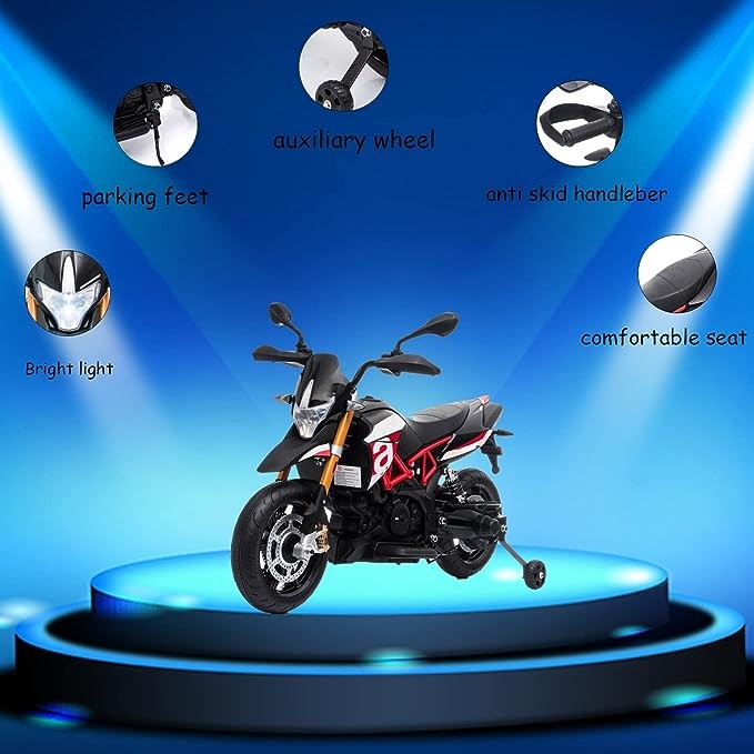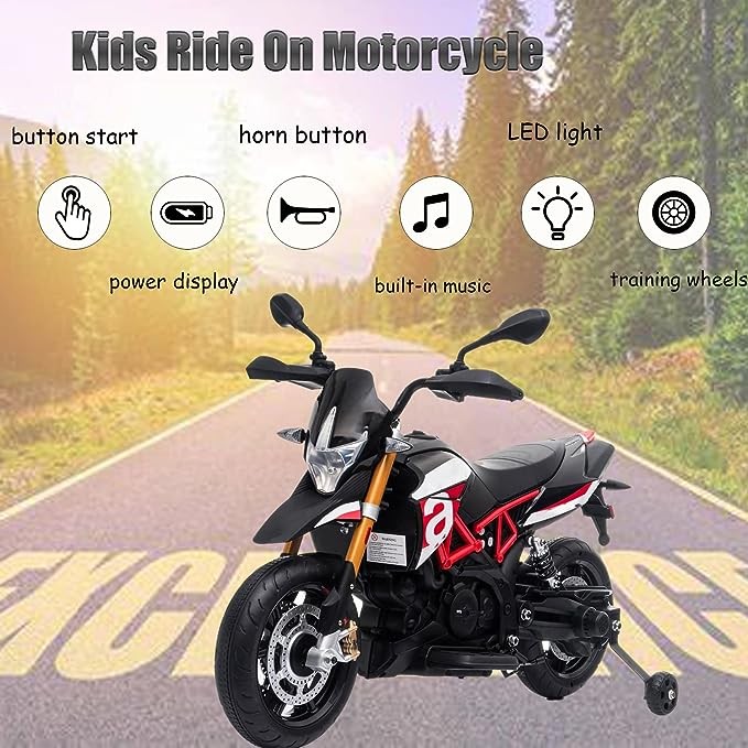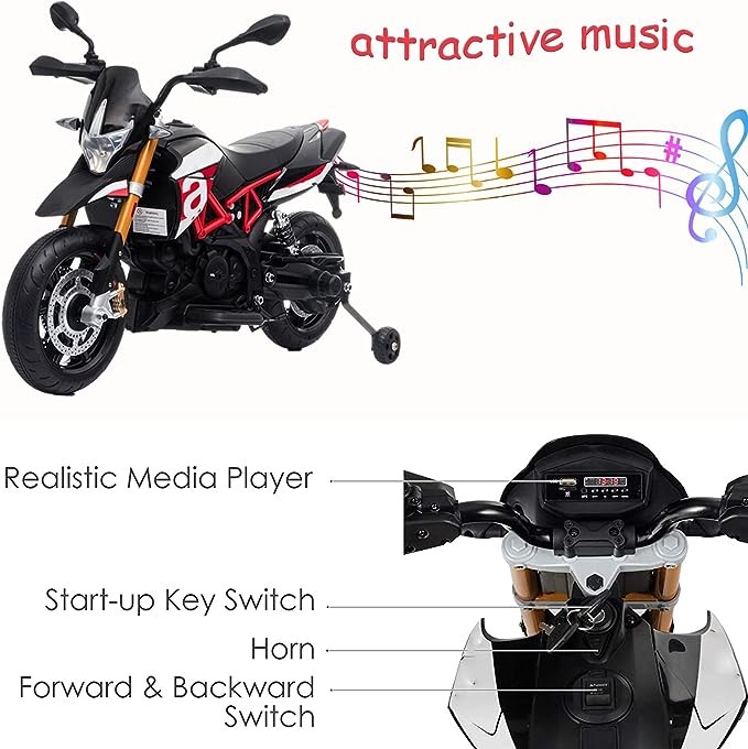 Balance Training Wheels: Designed with 2 detachable training wheels, this kids riding motorcycle can ensure good balance and safety. This 12V ride-on motorcycle is rear-wheel drive and has powerful shock springs to ensure it moves smoothly.