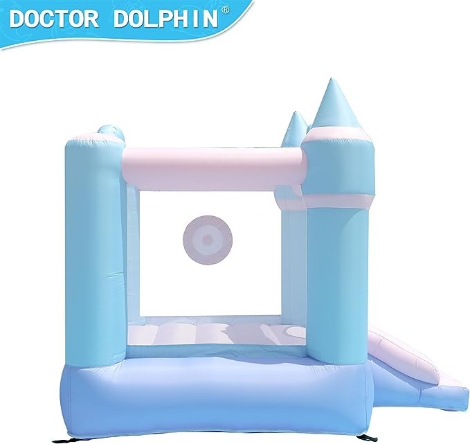 Bounce House with Slide for Kids Toddlers,8.43 x 6.56 x7.38 ft Bouncer Inflatable Bouncy Castle with Blower Basketball Hoop for Backyard Wedding Wet & Dry