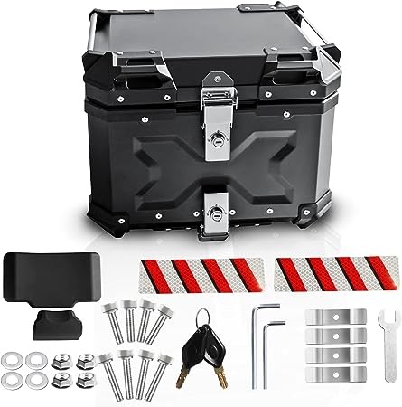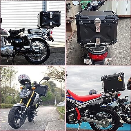 • 【Superior Quality】Aluminum alloy make Motorcycle Top Case anti-drop,wear-resistant,sturdy and druable.The removable and washable PU insulating cotton lining is equipped inner to provide buffer protection for the luggage and protect the inner shell from scratch. Anti-drop cover is installed in the four coners of the tail box in onder to avoid damages to the trunk of the motorcycle.