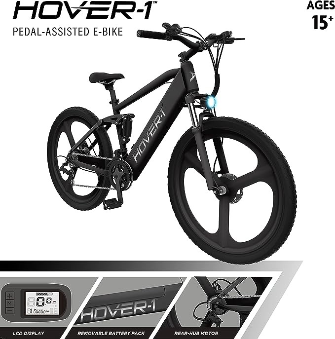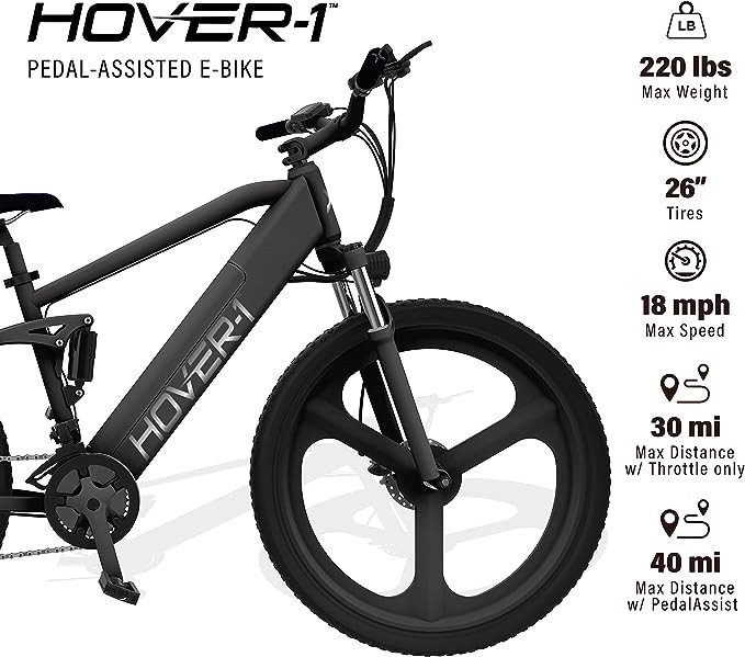 Hover-1 Instinct Electric Bike with 350W Motor, 15 mph Max Speed, 26” Tires, and 40 Miles of Range E-Bike
