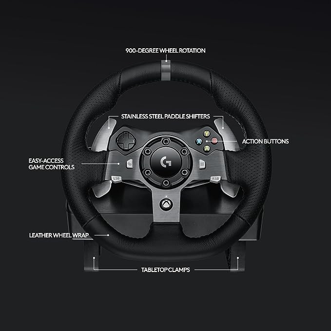 Logitech G920 Driving Force Racing Wheel and Floor Pedals, Real Force Feedback, Stainless Steel Paddle Shifters, Leather Steering Wheel Cover for Xbox Series X|S, Xbox One, PC, Mac - Black